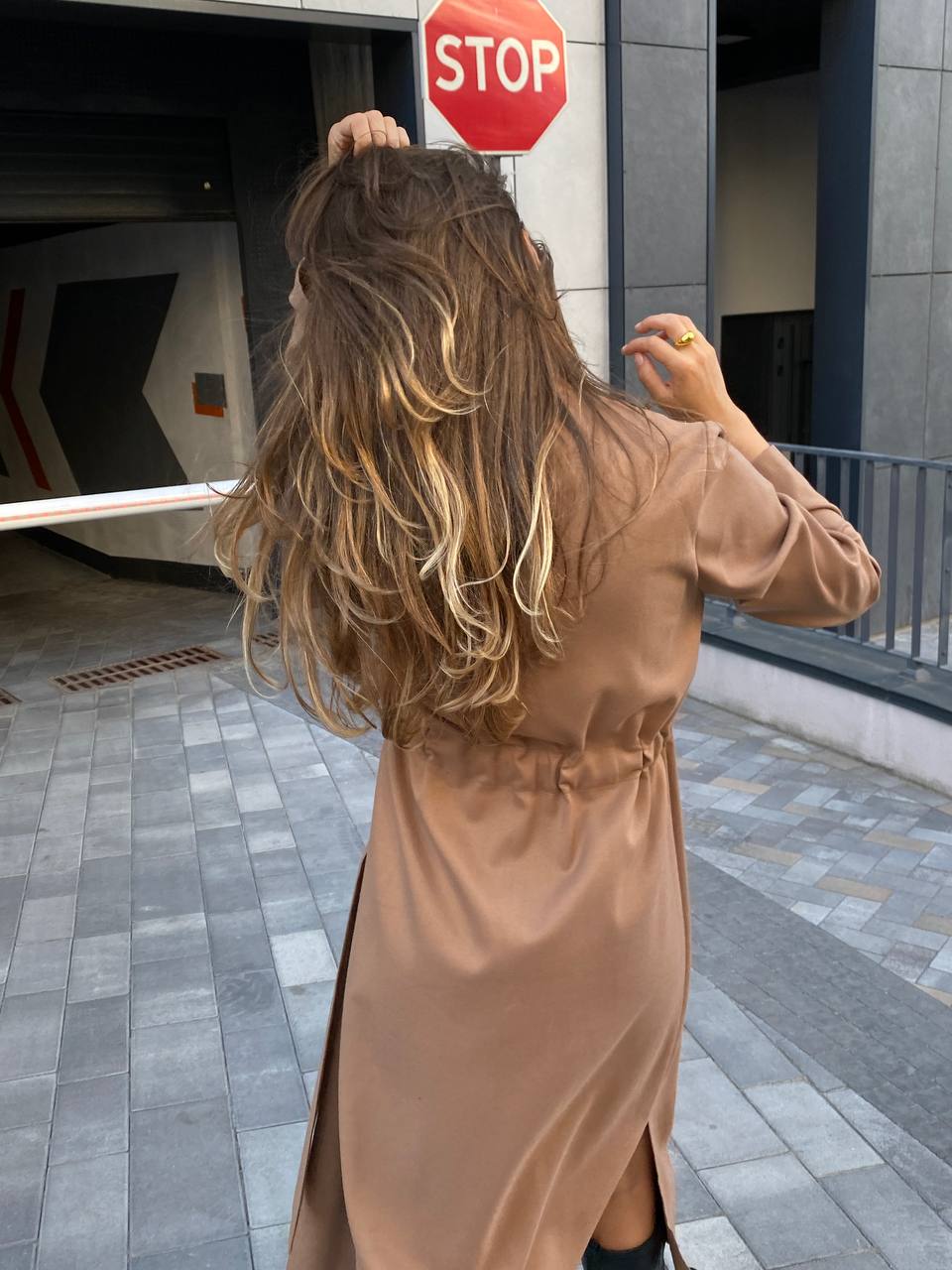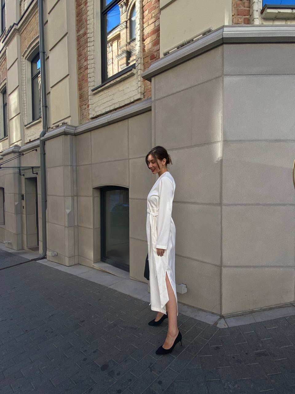 Сукня з двома розрізами по боках, що додає їй легкості та грації при кожному русі. Цей дизайнерський акцент надає образу сміливості і підкреслює жіночні контури.